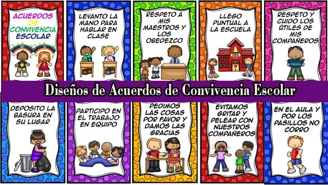 Portal de educación comparte con ustedes estos fabulosos diseños de acuerdos de convivencia escolar, diseñados por el staff de educación primaria.
