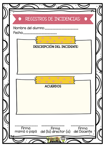 Hoy vamos a estar compartiendo estas fabulosas fichas de registro de incidencias para imprimir y editable que fueron elaboradas por la Maestra Lilo de la torre a quien se le agradece por compartir este fabuloso material educativo. Perfecto para el registro de incidencias preescolar.
